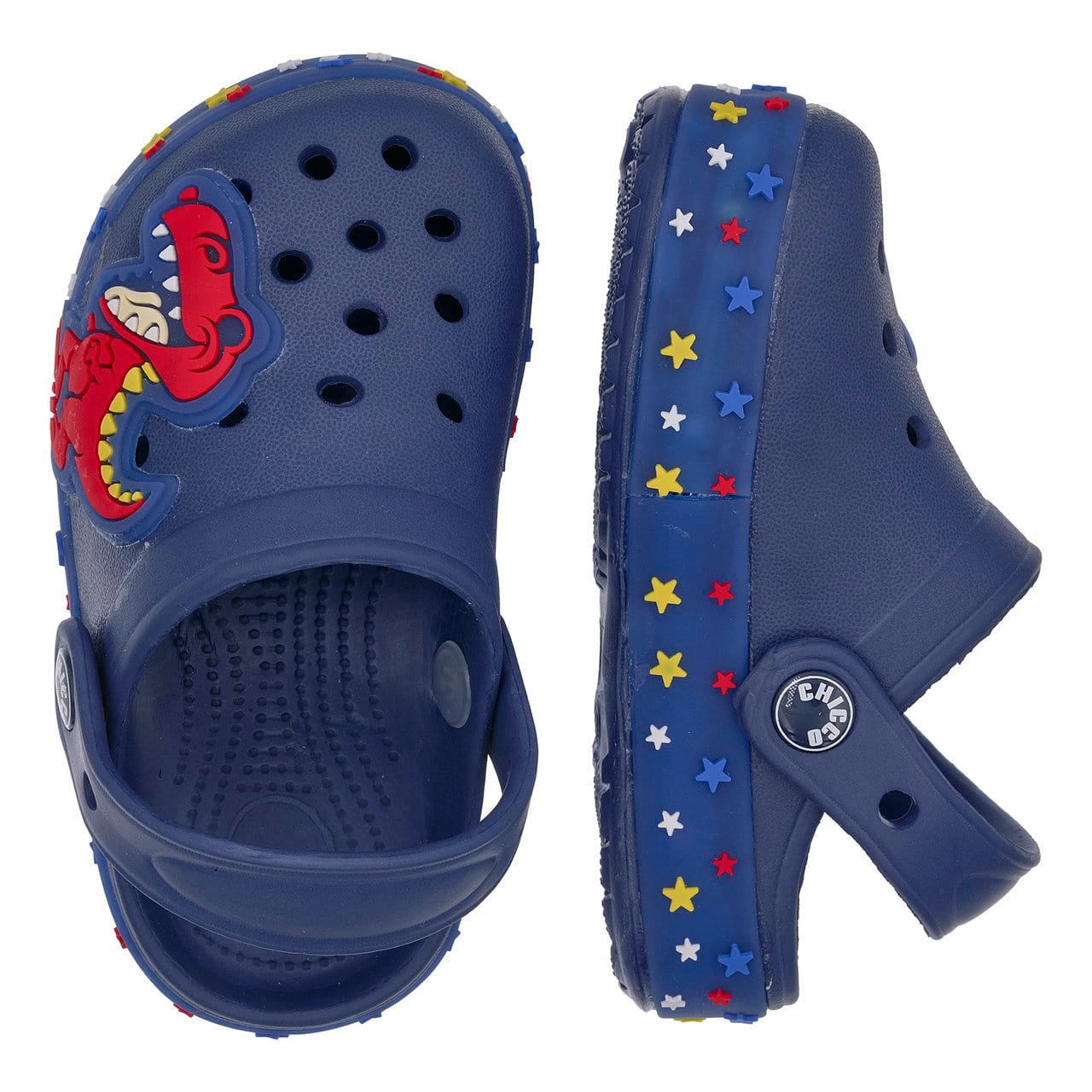 CHICCO LIGHT – Σανδάλι θαλάσσης με λουράκι στην πλάτη, διακοσμημένο με τρισδιάστατο “Δεινόσαυρο” και σόλα με πολύχρωμα απλικέ αστέρια.