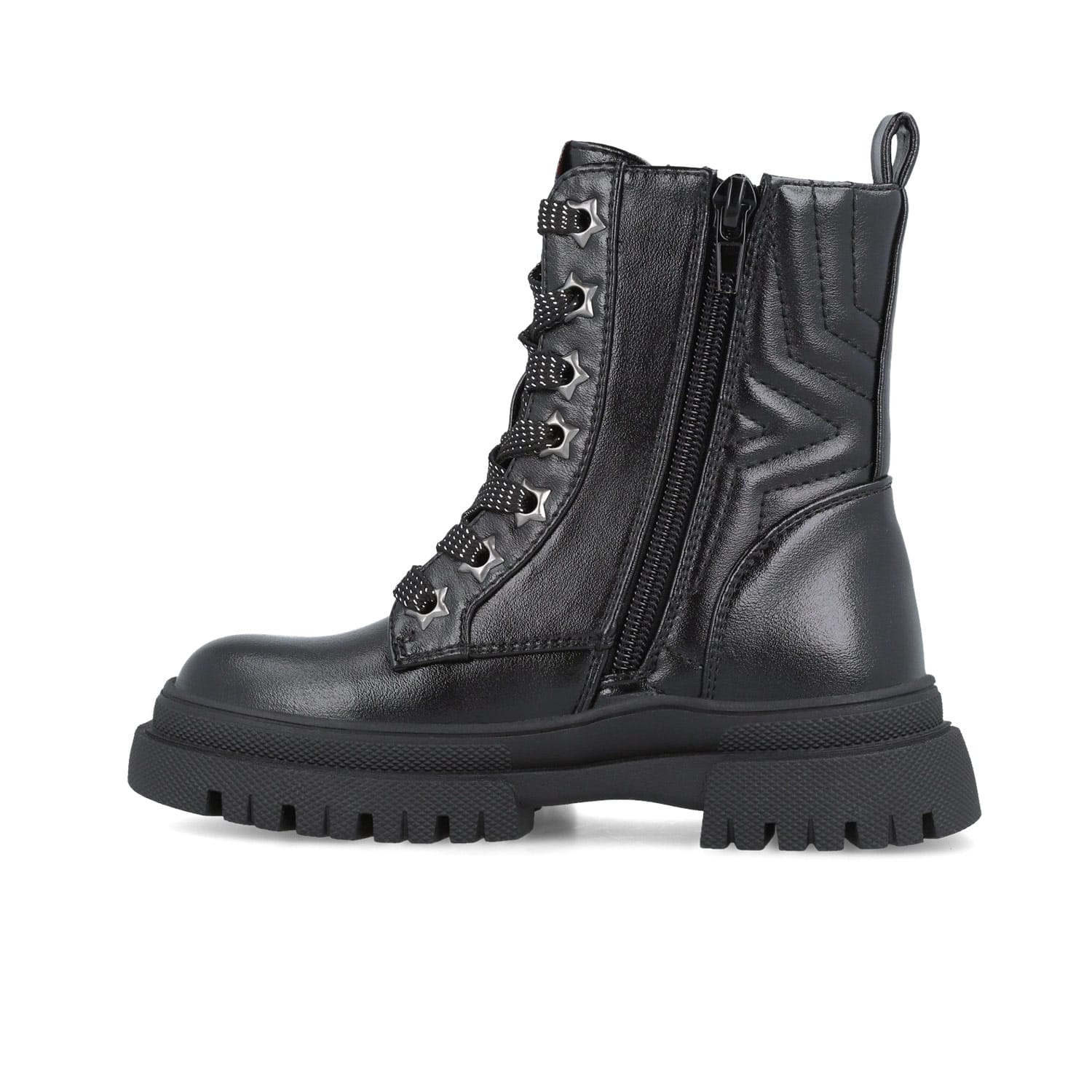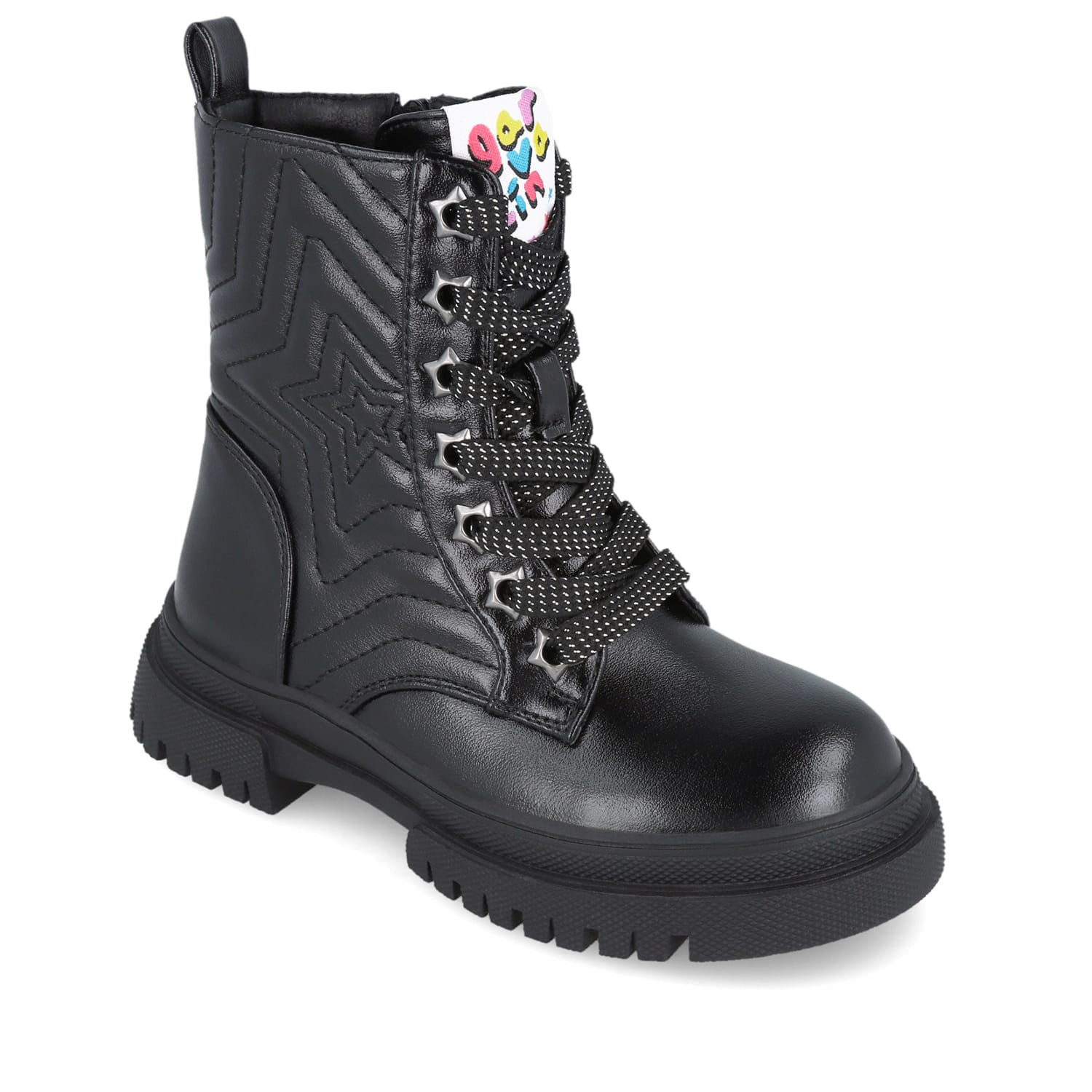 Παιδικo μποτάκι Garvalin για κορίτσι σε μαύρο χρώμα με αστέρι. Πολύ ιδιαίτερο μοντέρνο σχέδιο μία εξαιρετική επιλογή για εμφανίσεις όχι μόνο χαριτωμένες και girly αλλά και πολύ άνετες και ξεκούραστες.